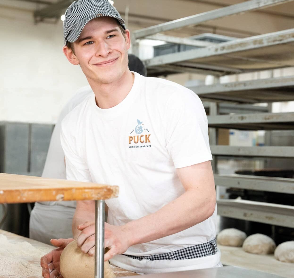 Nach dem Bund wusste ich noch gar nicht genau, was ich machen soll. Mir war nicht bewusst, dass ich mal ein Bäcker werden würde. Und das bei PUCK. Ein Freund von mir, der dort gerade seine Ausbildung zum Bürokaufmann machte, brachte mich drauf. Jetzt bin ich schon fast 15 Jahre hier – und komme immer noch gerne in den Betrieb, jeden Tag.