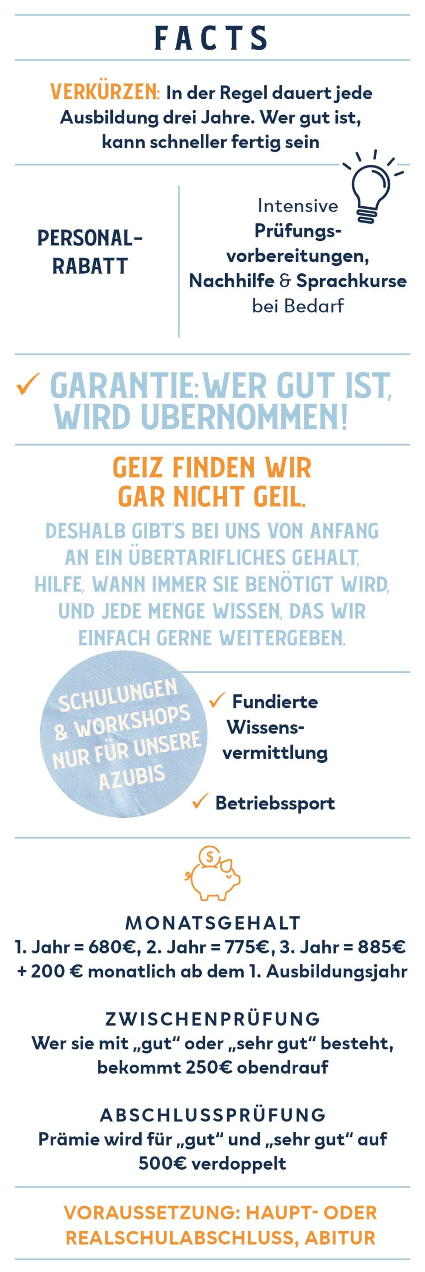 Mit der Fachhochschulreife oder Abitur verkürzt sich deine Ausbildungszeit auf zwei Jahre.